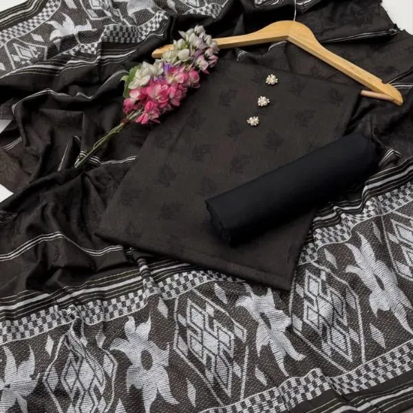 Shirt Fabric: Khaadi • Pattern: Embroidered • Shirt Front Pattern: Embroidered • Neckline: Embroidered • Sleeves Pattern: Embroidered • Daman: Embroidered • Shirt Back Pattern: Embroidered • Trouser Fabric: Khaadi • Trouser Pattern: Plain • Dupatta Fabric: Khaadi • Dupatta Pattern: Embroidered • Number Of Pieces: 3 Pcs • Package Includes: 1 x Shirt, 1 x Trouser, 1 x Dupatta • Shirt Cutting: 2.5 Gazz • Trouser Cutting: 2.5 Gazz • Dupatta Cutting: 2.5 Gazz • Color: Black • Note: There might be an error of 1-3 cm due to manual measurement, and slight color differences may occur as a result of varying lighting and monitor effects. • Product Code: MZ71500002597JSSE Size : Unstitched , Product Code: MZ71500002597JSSE