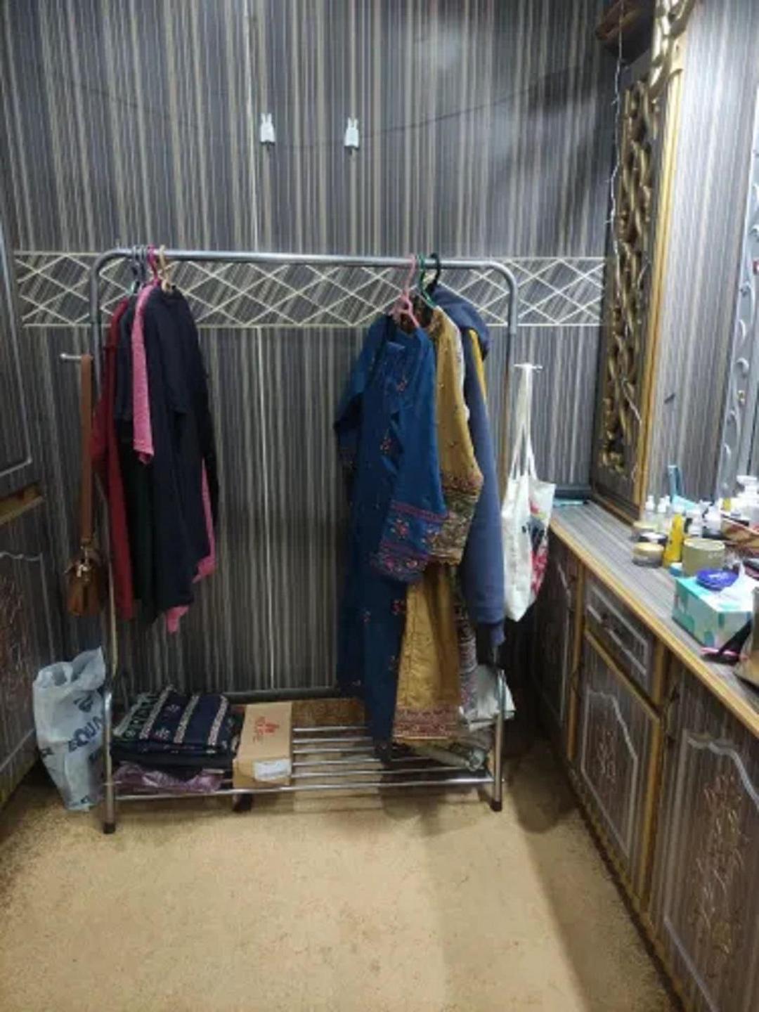 Best Quality Cloth hanging stand/ Shoes Rack Stand / Garments Stand/ Purse and Accessories Hanging stand/ Boutique Display stand rack for your Home and Garments shop • Material: Iron • Number Of Pieces: 1 Pc • Product Feature: Affordable And Effective Solution • Color: Silver • Package Includes: 1 x Cloth Hanging Clips • Width: 48 Inches • Height: 60 Inches • Note: There might be an error of 1-3 cm due to manual measurement, and slight color differences may occur as a result of varying lighting and monitor effects. • Product Code: MZ171200002UATS Color : Silver