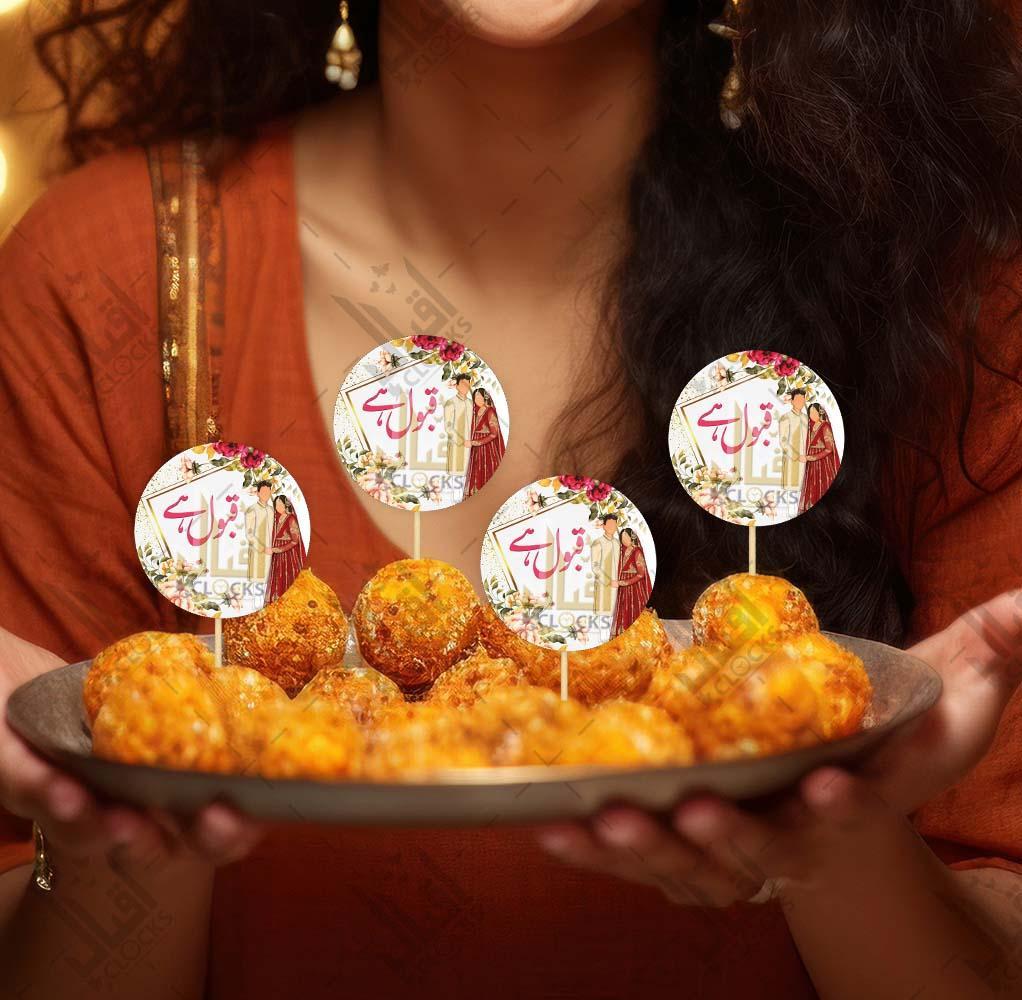 Elevate your celebrations with these vibrant 12 Pcs Cake Toppers, perfect for adding charm to any cake. These delightful toppers serve as a stunning decor accessory, enhancing the visual appeal of your creations. Whether it's a birthday, wedding, or any special occasion, these cake toppers provide the perfect finishing touch for your delectable treats. • Material: Paper • Number Of Pieces: 12 Pcs • Package Includes: 12 x Cake Topper • Qabool Hai Mithai Toppers, Digital Print Pack of 12 Engagement Sweet Topper, Perfect for Wedding Party Celebration and Cake Decoration • You can effortlessly turn your party into a hilarious and interactive experience. • A unique way to make everyone laugh at the party. • We have Cake Toppers and Cupcake Toppers available for Born Baby Birthday, Wedding Anniversary & Engagement ceremony. • Suitable for Happy Birthday & Engagement, Wedding, Dholki & Mehndi Parties Celebrations and other related Events. • Adds a festive and celebratory vibe to your event. • These toppers are sure to impress your guests. • Note: There might be slight color differences as a result of varying lighting and monitor effects. • Product Code: MZ1006200034MIDR Size : 3 Inches