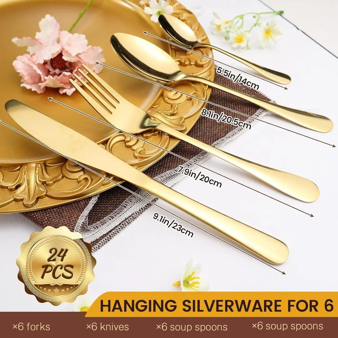 Elevate Every Meal with Luxury Convenience Tired of a cluttered cutlery drawer? Presenting the flatware set that transforms your dining experience from ordinary to extraordinary. This exquisite 24-piece set isn't just about having enough forks, spoons, and knives—it's about owning a centerpiece of elegance and practicality for your kitchen and dining table. • Material: Stainless Steel • Number Of Pieces: 24 Pcs • Product Feature: Available In A Variety Of Styles And Colors • Color: Golden, Silver • Package Includes: 24 x Kitchen Shears/Scissors • Set Of 24 • 3. Key Features Benefits • ? COMPLETE SERVICE FOR 6 • Dine and entertain with ease. The set includes 6 Dinner Forks, 6 Salad Forks, 6 Table Spoons, and 6 Dinner Knives—everything you need to set a perfect table for six. • ? PREMIUM STAINLESS STEEL • Built to last a lifetime. Made from high-quality, food-grade 18/0 stainless steel that is rust-resistant, corrosion-resistant, and will not bend or tarnish. Your investment in elegant dining is protected. • ? LUXURIOUS MIRROR POLISH • Behold the brilliance. Each piece is meticulously mirror-polished to a stunning, reflective finish that catches the light and adds an instant touch of glamour and sophistication to your table setting. • ?? DURABLE EASY CARE • Beauty that's practical. The stain-resistant finish ensures effortless cleaning. Simply hand wash or place in the dishwasher for a spotless shine after every use, saving you time and effort. • Note: There might be an error of 1-3 cm due to manual measurement, and slight color differences may occur as a result of varying lighting and monitor effects. • Product Code: MZ1857200003BSLY Color : Golden Silver
