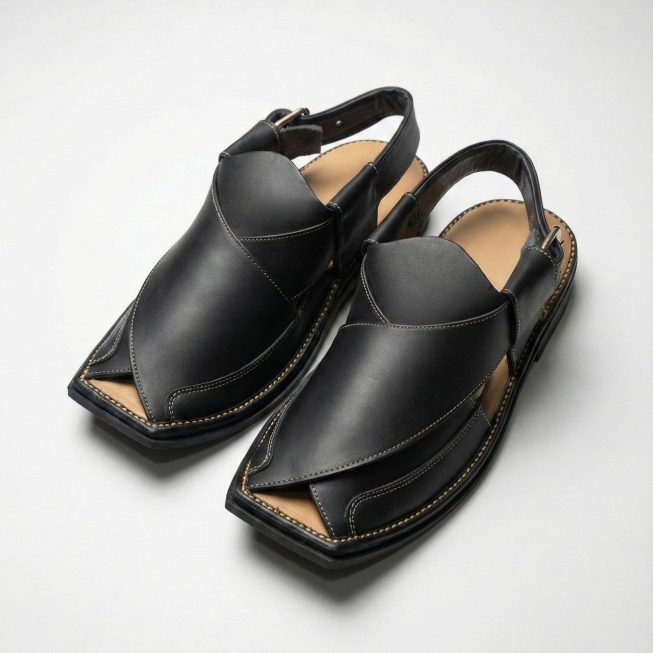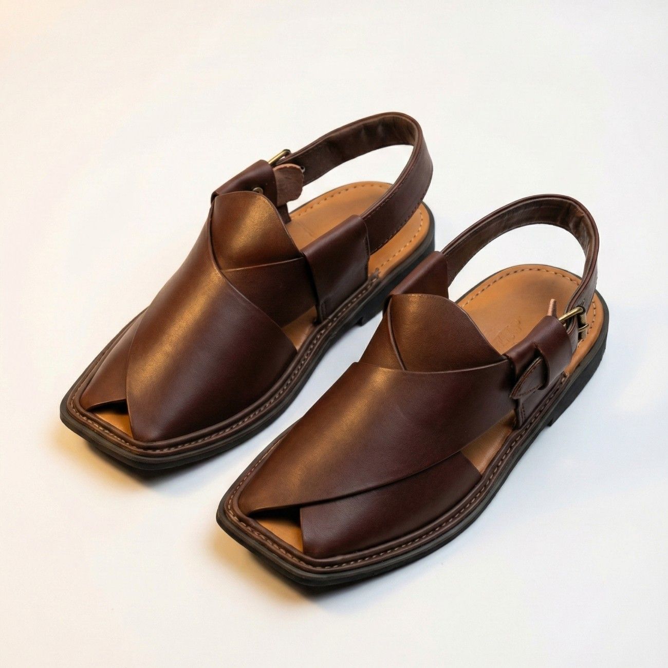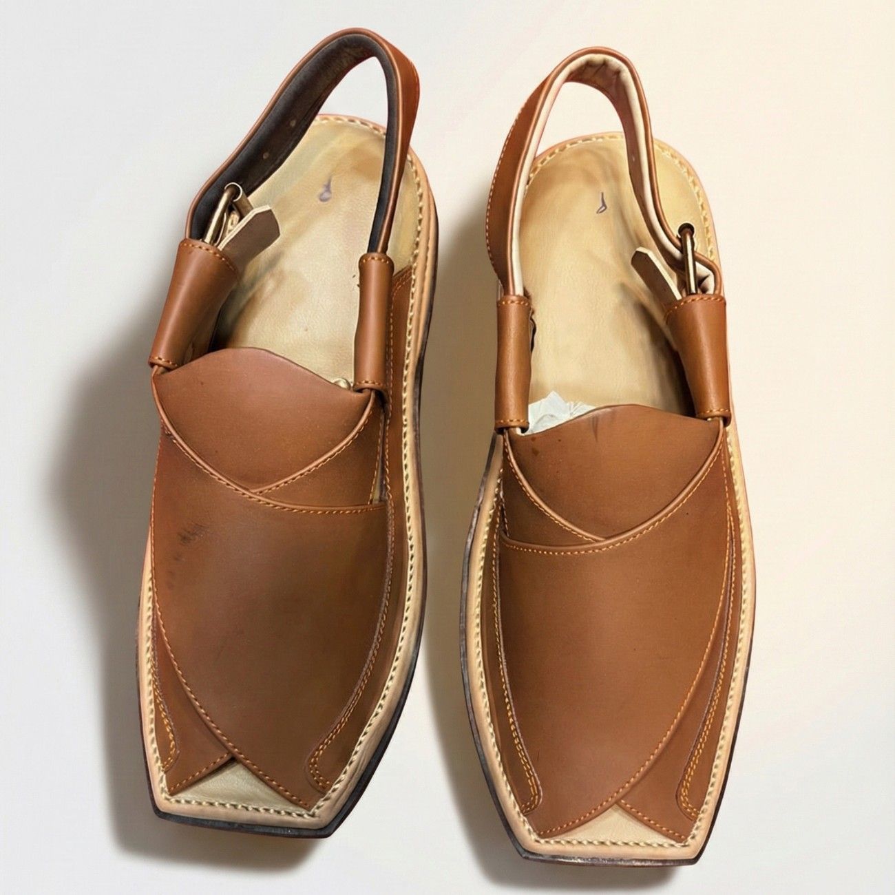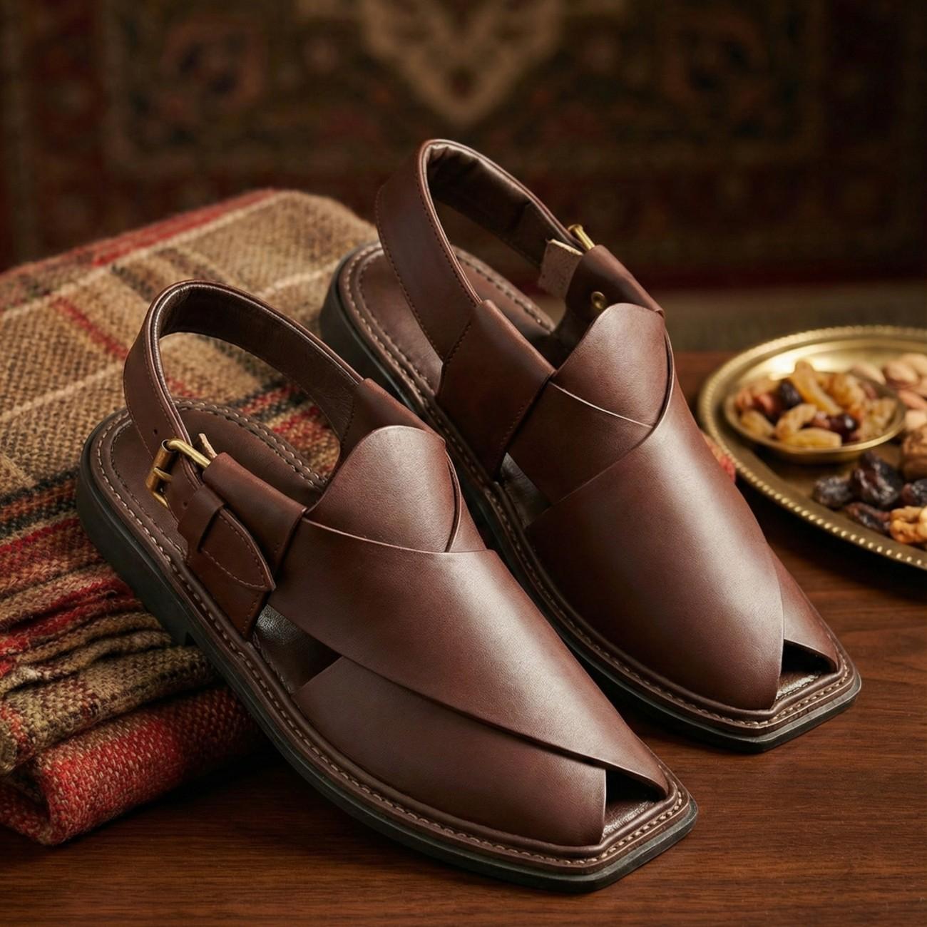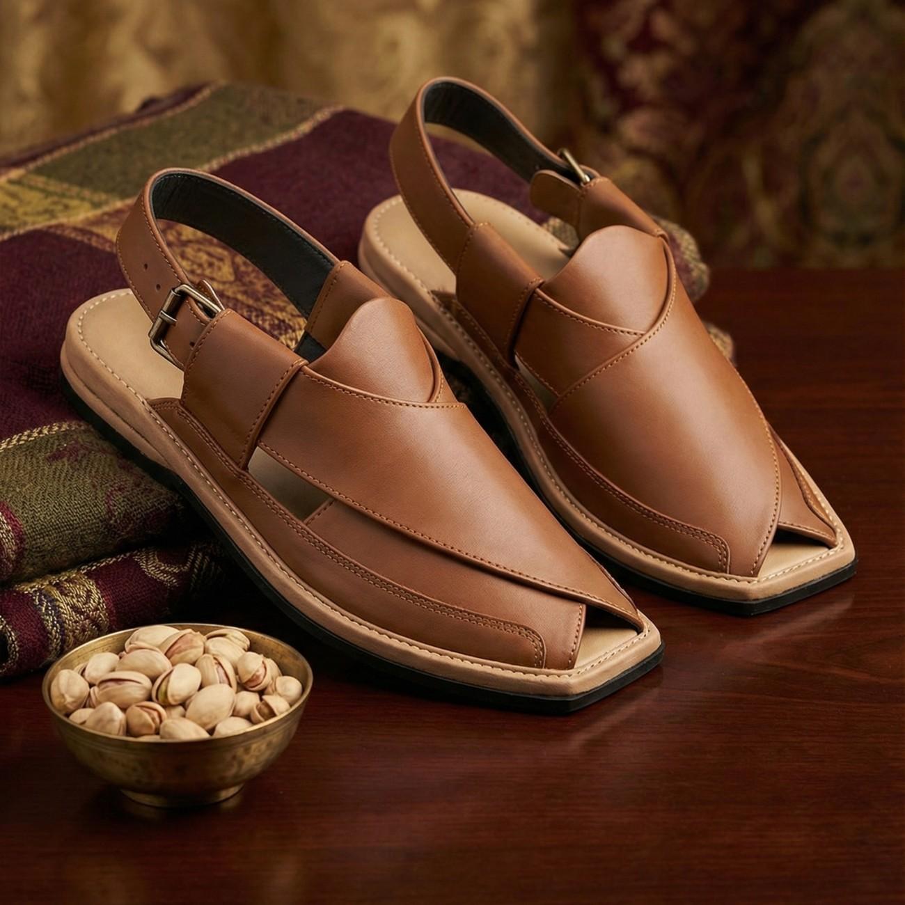 Step out in confidence with our authentic Peshawari Chawat, a masterpiece of traditional craftsmanship. Handcrafted by skilled artisans, this chawat is designed for those who appreciate the perfect balance of rugged durability and classic style. Crafted with a premium high-quality finish, the upper offers a sleek look and a comfortable fit. The heavy-duty sole provides superior grip and longevity, making it the perfect companion for your daily walks or special occasions. It pairs perfectly with a Shalwar Kameez for a complete, majestic traditional look. Key Features: Premium Material: High-quality durable upper with a smooth, polished finish. Handcrafted Perfection: Stitched by hand for a robust finish that adds to its authentic charm. Durable Sole: Built to withstand rough usage while offering excellent grip on all surfaces. Adjustable Fit: Features the classic buckle strap for a secure and comfortable fit. Timeless Style: The authentic design is perfect for Eid, weddings, or casual wear. Specifications: Style: Traditional Peshawari / Norozi Cut Sole: High-Durability Tyre/Rubber Sole Origin: Handmade in Balochistan