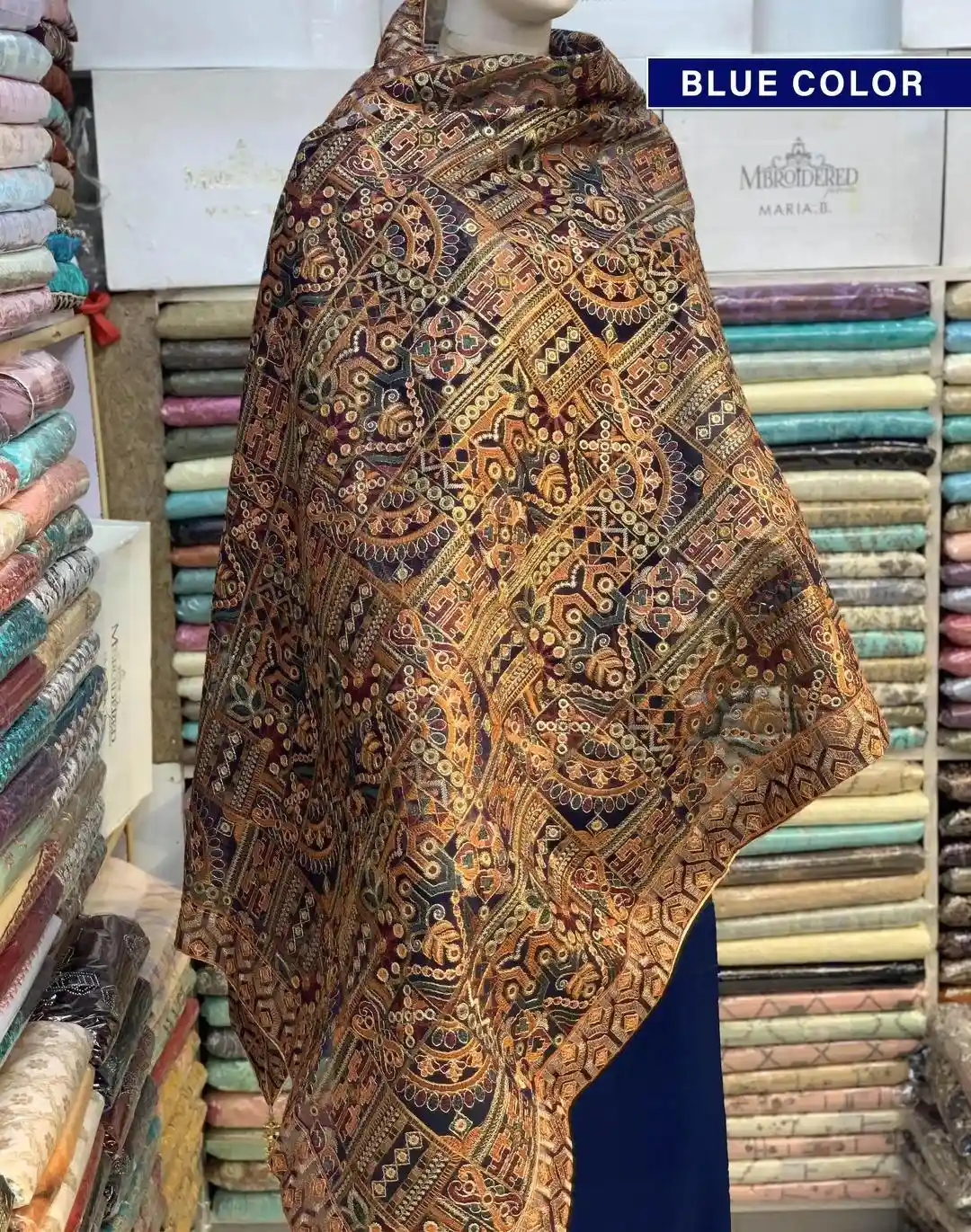 Fabric: Fleece • Pattern: Embroidered • Color: Black, Blue, Green, Orange, Red, Maroon, Golden, Pink • Package Includes: 1 x Shawl • Length: 2.5 Meter • Width: 1 Meter • cash on delivery all over Pakistan • Turkish organza shawl • Stuff: Premium Quality • delivery takes 2-3 days • Note: There might be an error of 1-3 cm due to manual measurement, and slight color differences may occur as a result of varying lighting and monitor effects. • Product Code: MZ2110200003BLVY Color : Black Blue Green Orange Red Maroon Pink Golden Purple